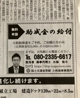 *当然、法律家が「無料」で全て引き受けるのは法律違反ですが、その代わりに船舶検査又は船員の雇入れ、雇止めを担当させて頂く代わりに無償で可能との通知を運輸局の方と対話をして了承済みとなりました。