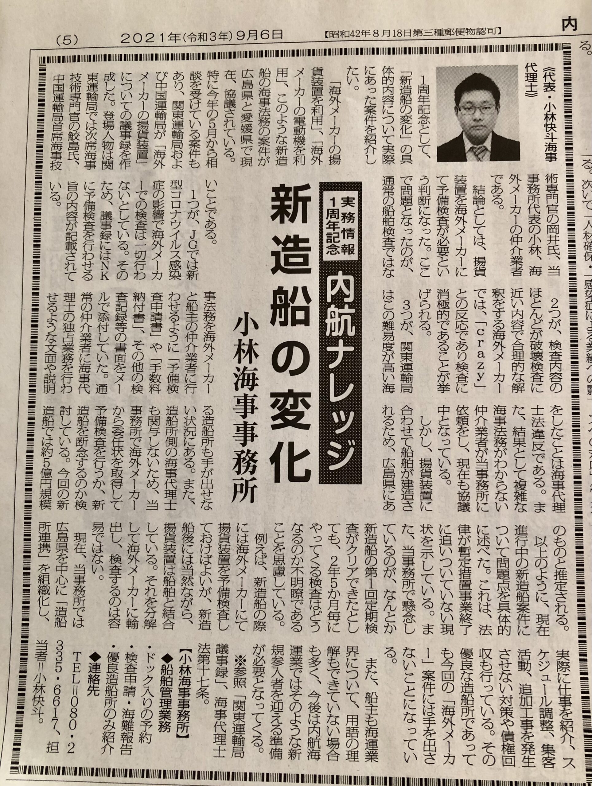 メディア関係では「内航海運新聞」での記事掲載及び広告を出稿しておりました。(内航ナレッジシリーズ)