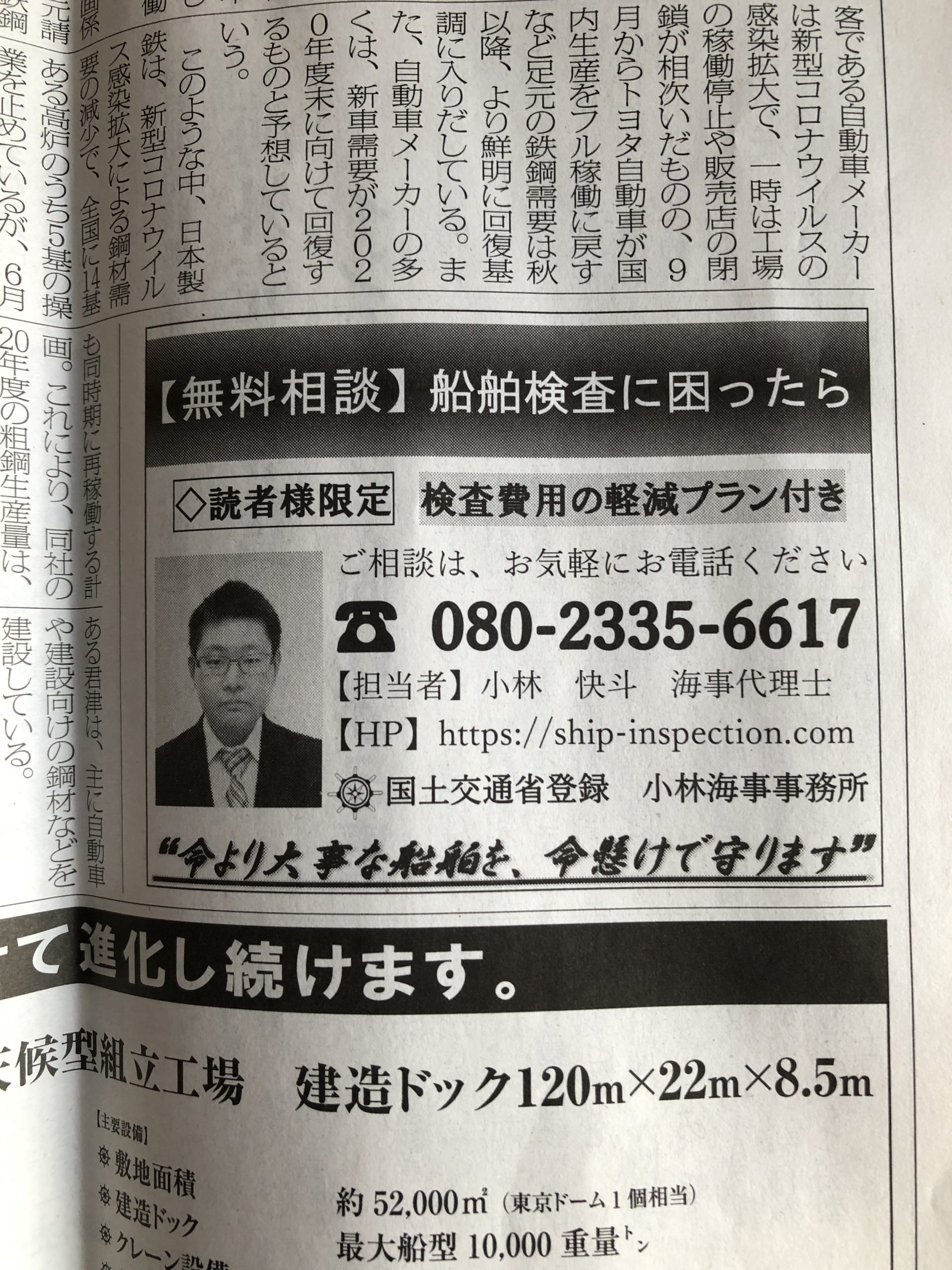 今回も、内航海運新聞で「船舶検査」についての広告を11月2日の記事に掲載させて頂いています!