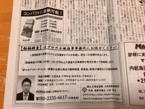 今回も、内航海運新聞で「船舶検査」についての広告を11月2日の記事に掲載させて頂いています!