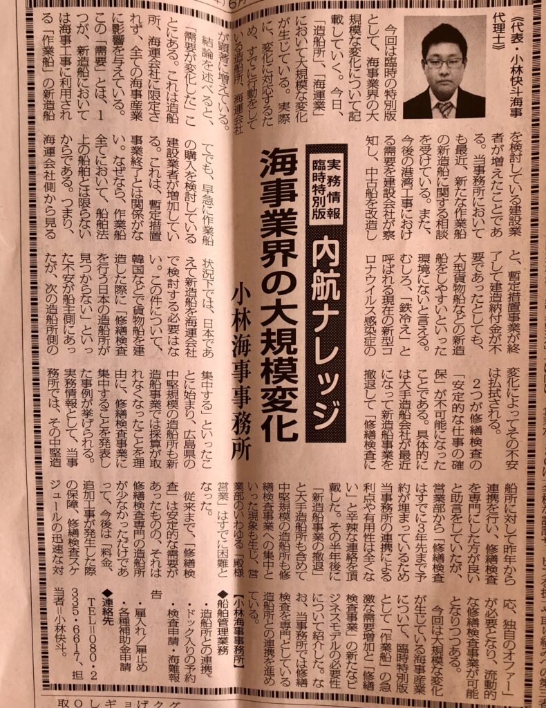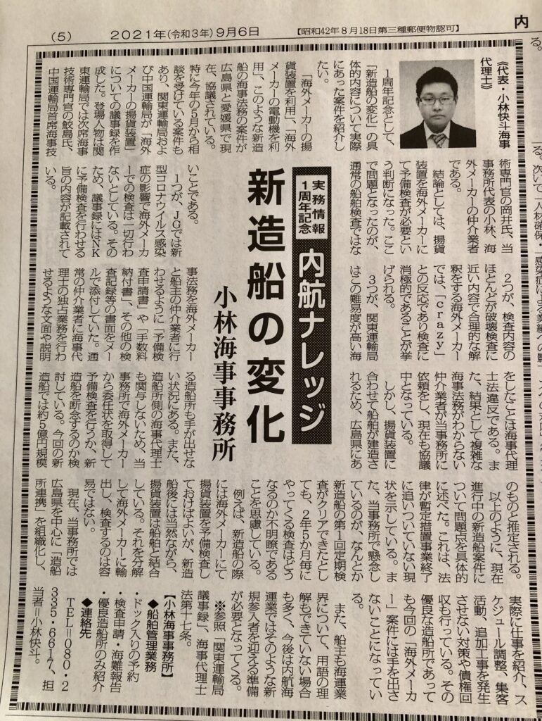 内航海運新聞掲載「内航ナレッジ16弾」海運の新法
